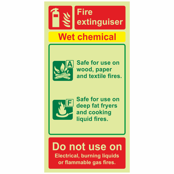 The IMPA 33.6434 Wet Chemical Fire Extinguisher Identification Photoluminescent Sign is designed to clearly mark the location of wet chemical fire extinguishers, which are essential for safely tackling Class F fires involving cooking oils and fats. T...Full description