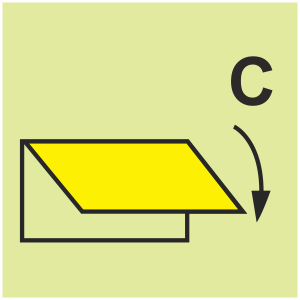 This sign is produced using photoluminescent material that absorbs ambient light and glows brightly in dark or smoke filled environments. Its glow in the dark function ensures crew members can easily locate the ventilation closing appliance even in power loss conditions, allowing for fast and effective action when responding to fire related events.