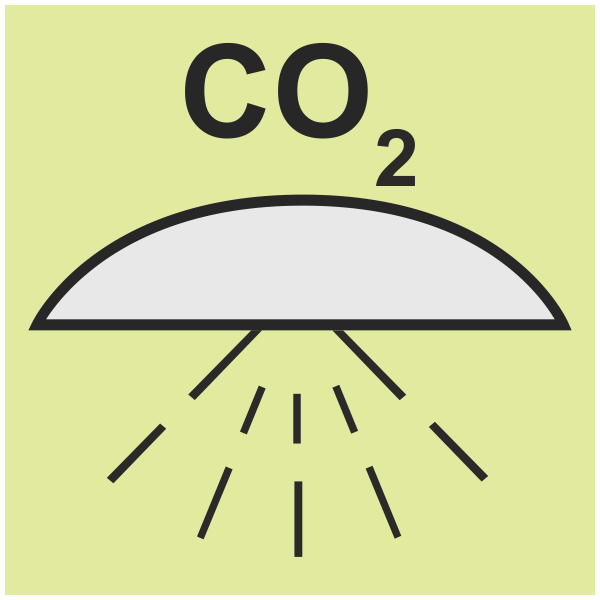The IMPA 33.6859 Space or Group of Spaces Protected by Fire Extinguisher System CO2 Photoluminescent Sign is a crucial safety identifier used to indicate spaces protected by a fixed carbon dioxide (CO2) fire extinguishing system onboard ships, offsho...Full description