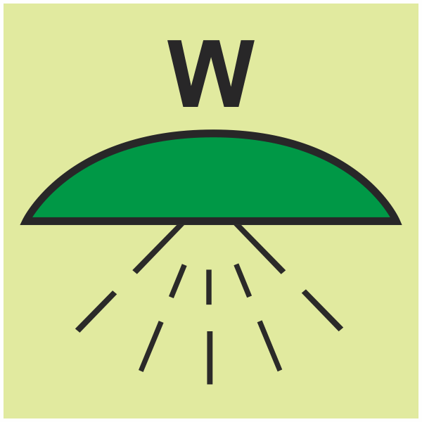 The IMPA 33.6863 Space or Group of Spaces Protected by Fire Extinguisher System Water Photoluminescent Sign is a critical fire safety sign used to indicate areas protected by a fixed water-based fire extinguishing system onboard ships, offshore installations, and industrial facilities. Water fire suppression systems are highly effective in controlling fires involving solid combustibles, making them essential for engine rooms, accommodation spaces, and cargo areas. This sign ensures that such protected spaces are clearly marked for quick identification during inspections or emergency response situations.